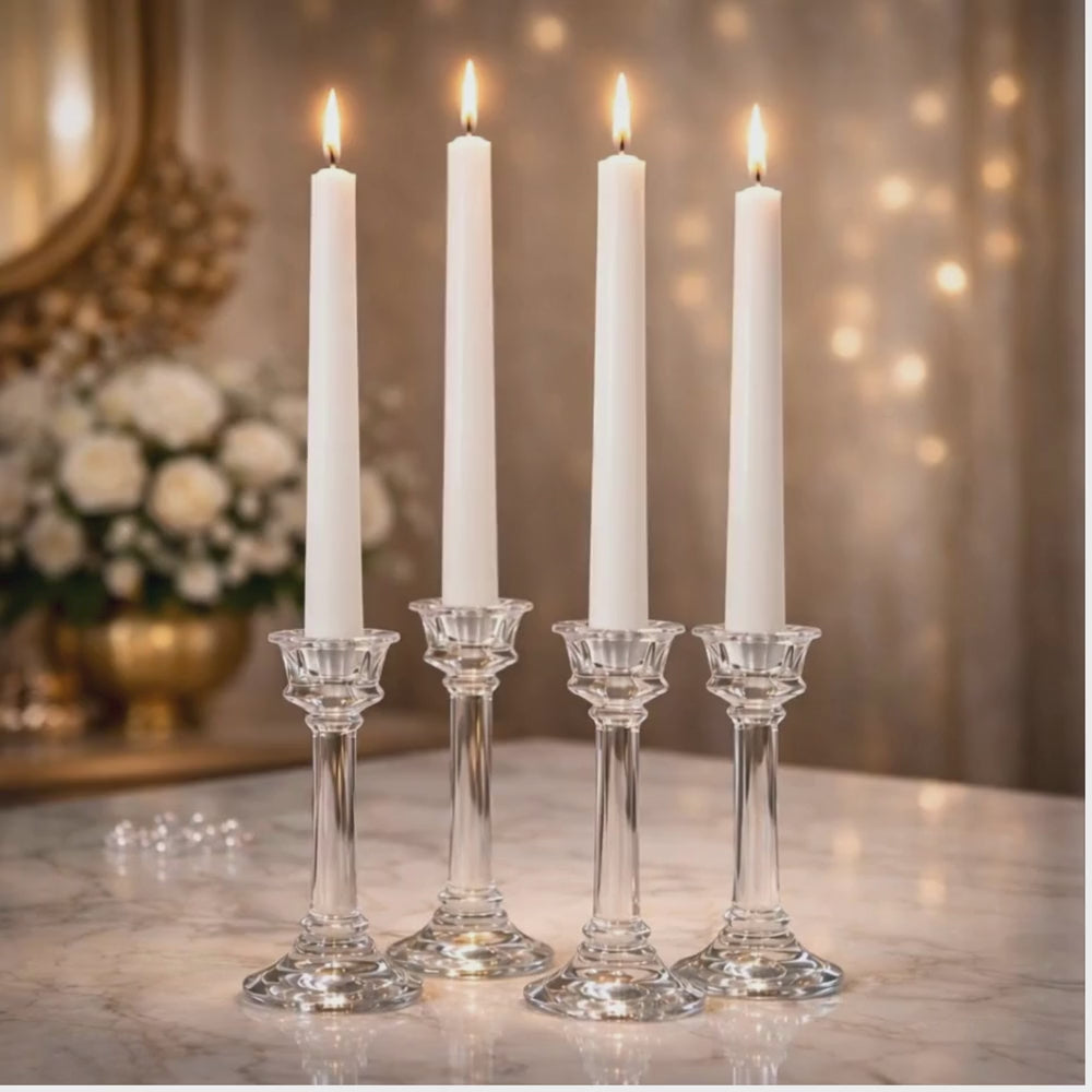 Elevate your home ambiance with this elegant set of 4 luxury white taper candles. Crafted for refined spaces, these slender candles deliver a clean, sophisticated glow perfect for dining tables, mantels, or special occasions. The pristine white finish complements any décor style while providing hours of steady, even burning. Ideal for creating an intimate atmosphere or adding a touch of timeless elegance to your everyday moments.
